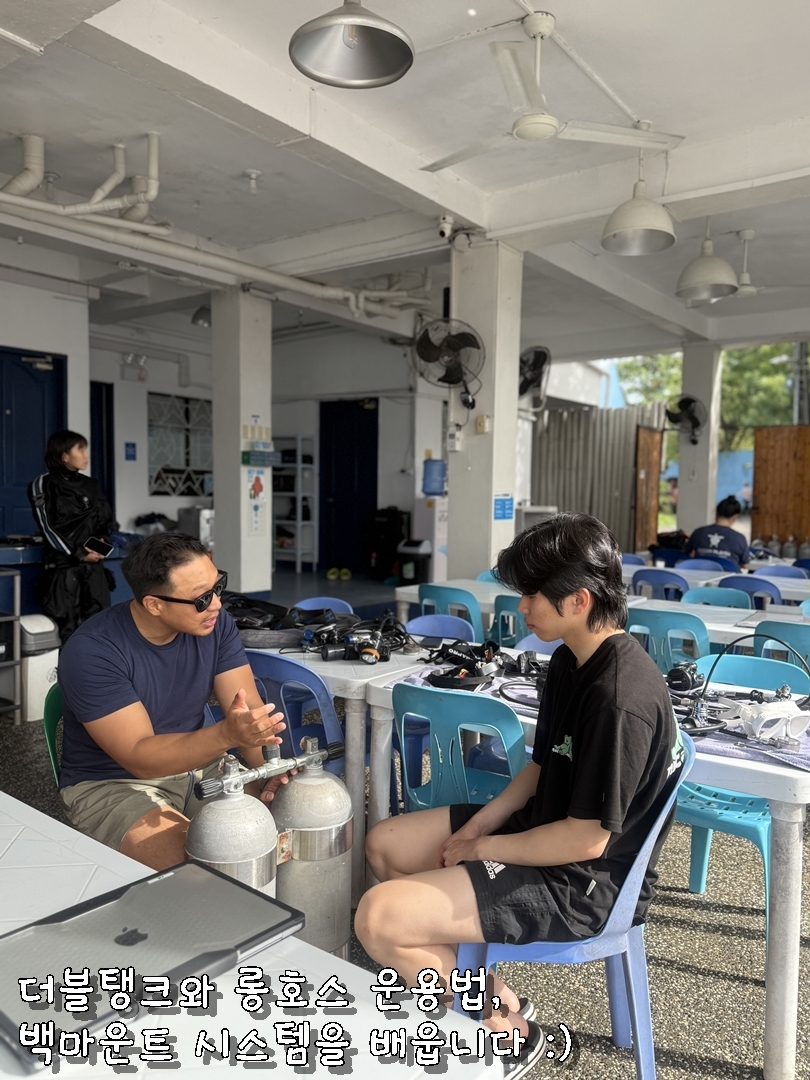 다이빙 기초인 부력, 트림, 밸런스와 더블탱크/롱호스 운용법들을 배울 수 있는